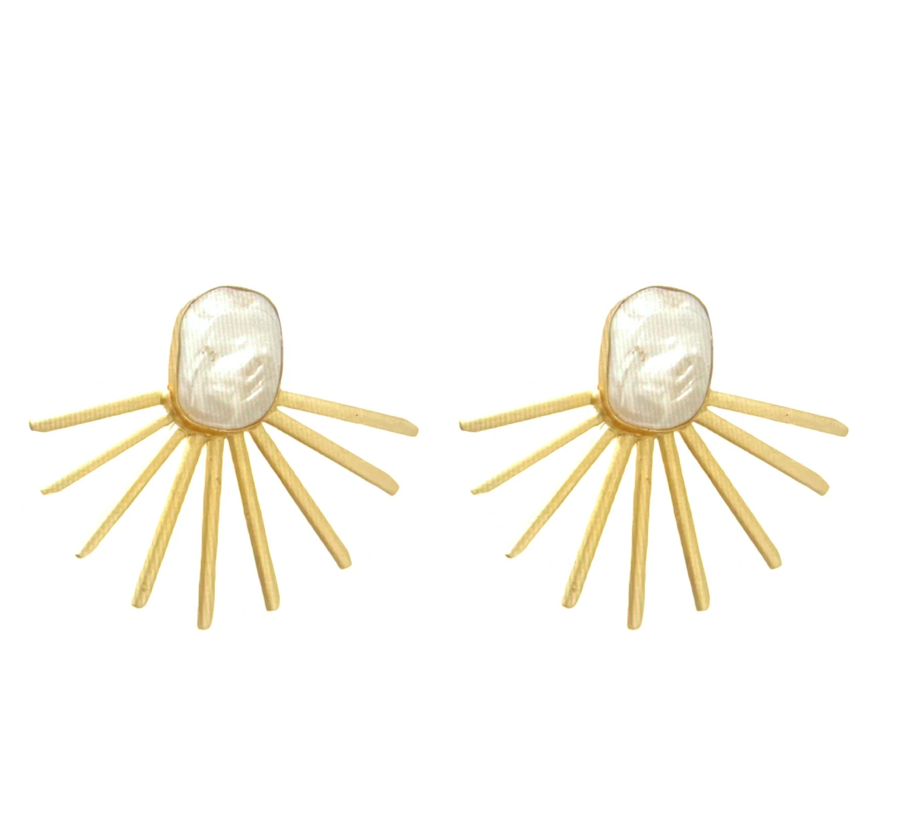 A sophisticated Earrings made of Brass base- Gold dipped and mother of pearl. All products were created with love and expertise, resulting in exquisite pieces that capture the essence of enduring elegance.