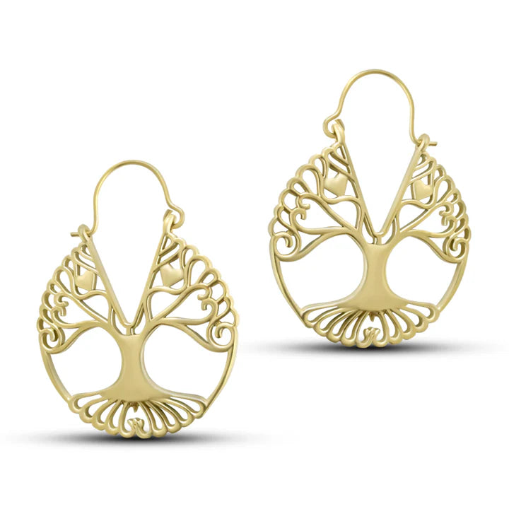 Embodying the enchanting allure of nature, these exquisite huggie hoop earrings feature a delicate filigree design that mirrors the intricate patterns of tree branches. Crafted in high-quality 18k gold-plated brass, their shimmering finish brings a touch of radiant elegance to any look.