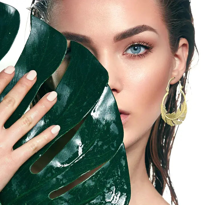 Inspired by delicate feathers dancing in the breeze, these gold-plated hoop earrings embody a sense of freedom and elegance. The simple yet striking feather motif gracefully wraps around the hoop, adding a touch of nature-inspired charm to your look.